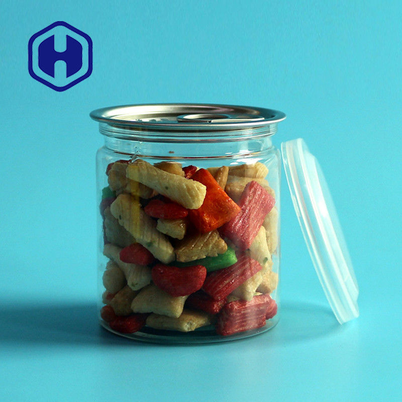 Questo contenitore di plastica trasparente è una lattina di PET vuota per alimenti che è adatta per la conservazione di cibi secchi in scatola, salse, spezie e così via.Ha un facile fine aperto e viene in forma cilindrica o può essere personalizzato.