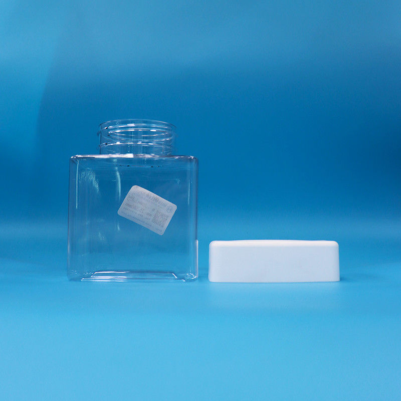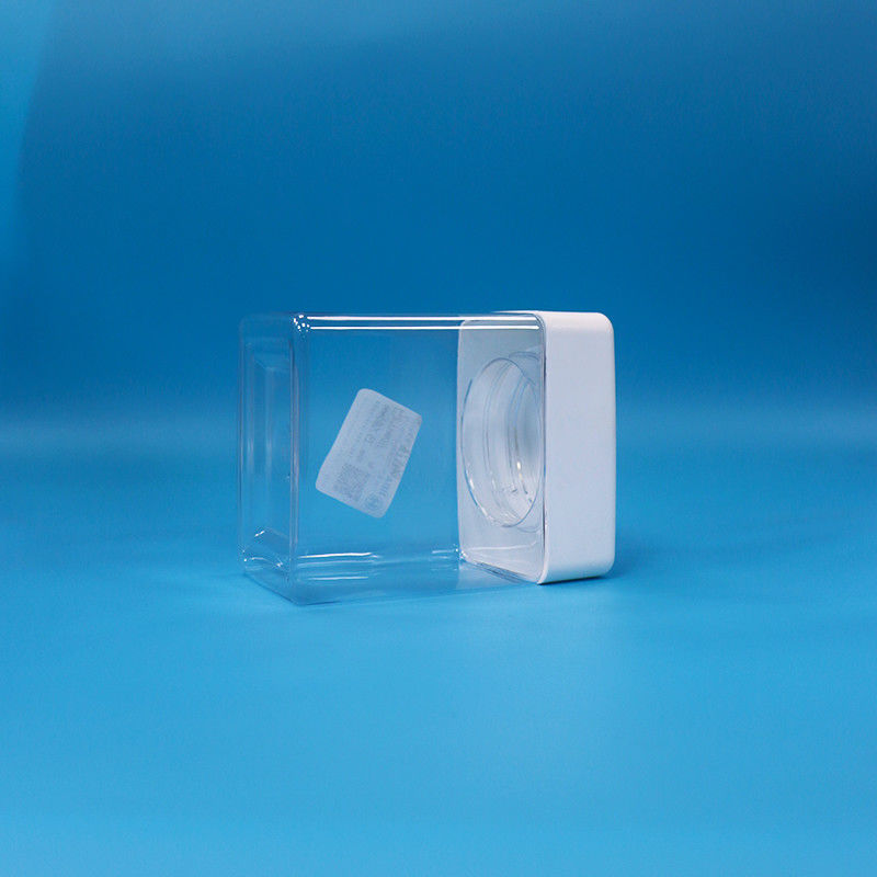 Trasparenza PET Caramelle Spuntini di plastica di grado alimentare Barattoli quadrati Vesticolo a vite