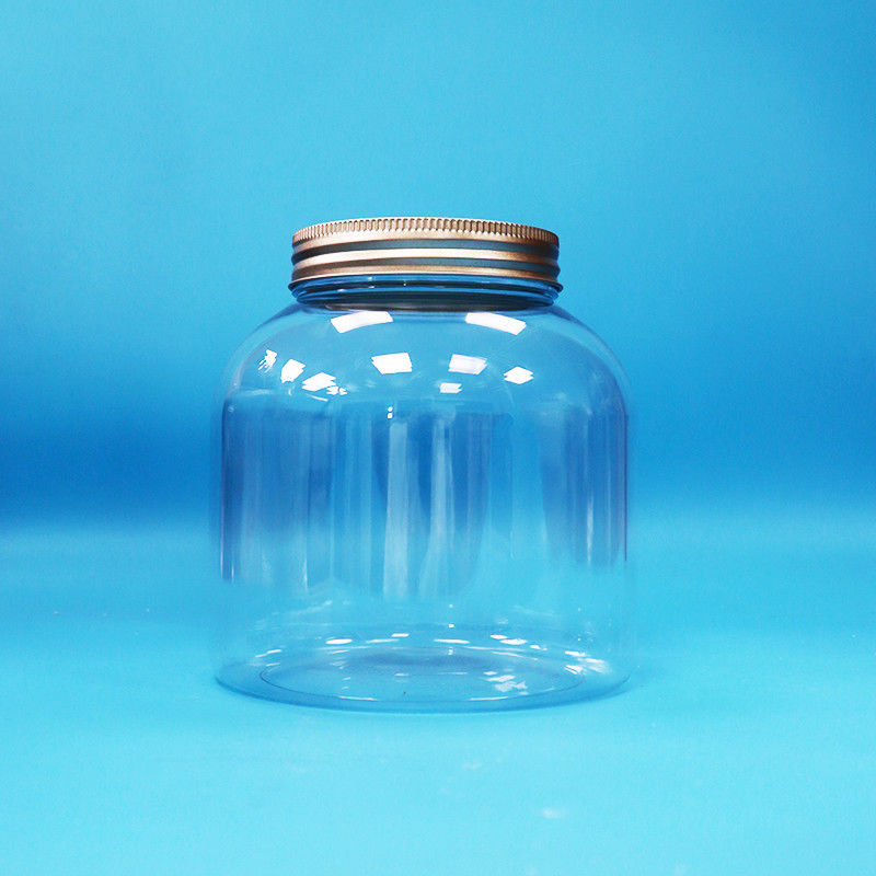 Barattoli di cibo giornaliero di plastica PET rotonda trasparente con coperchi a vite in alluminio