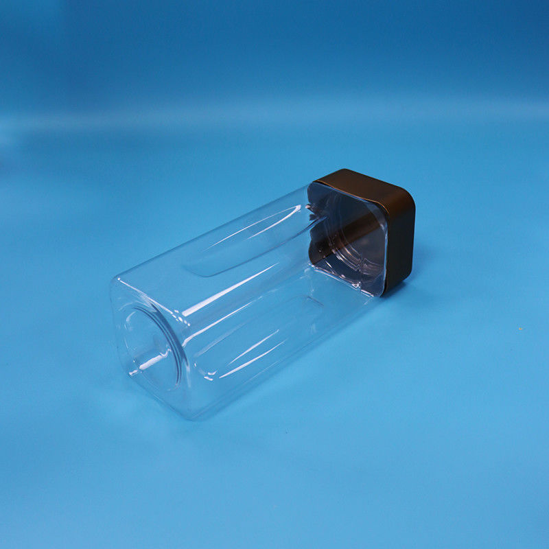 1.PET trasparente, bocca larga e rettangolare, barattolo di plastica per caramelle con tappo metallico, con opzioni di doppia tenuta