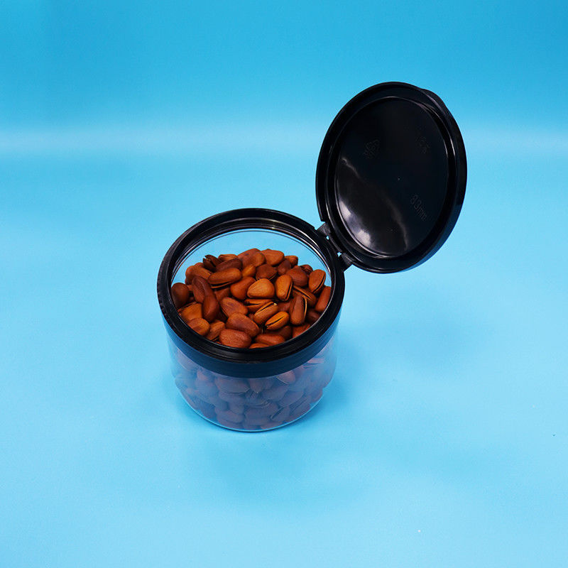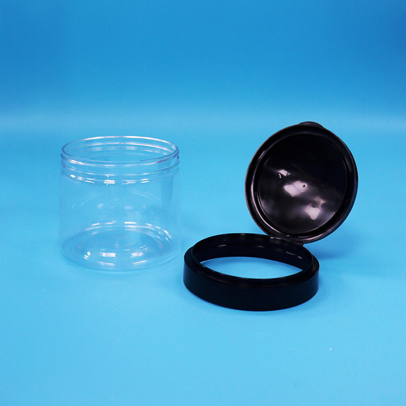 Grado alimentare Piccolo contenitore di plastica rotonda Barattolo trasparente di plastica coperchio a vite nero