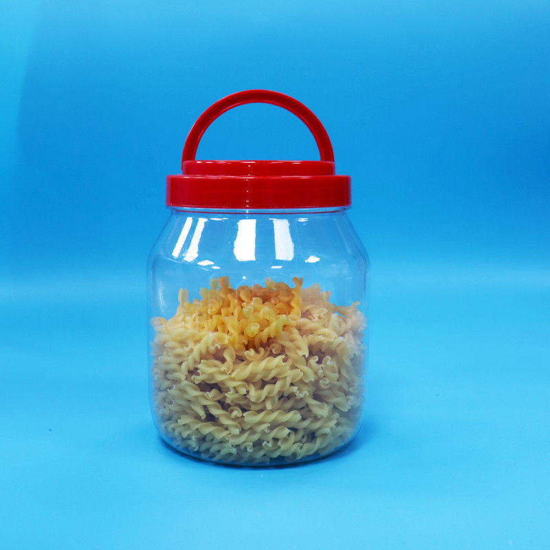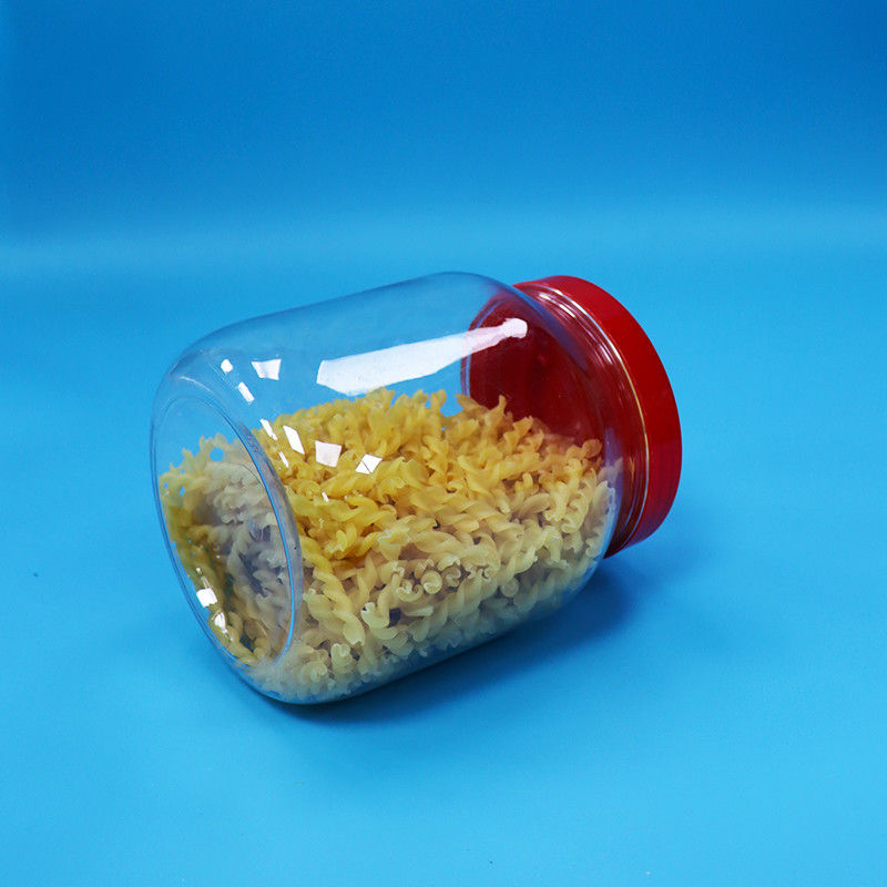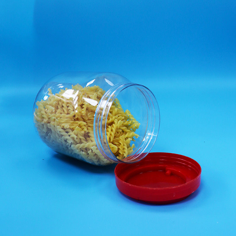 Caramelle biscotto bocca larga PET di qualità alimentare trasparente vaso cilindrico vite tappo rosso