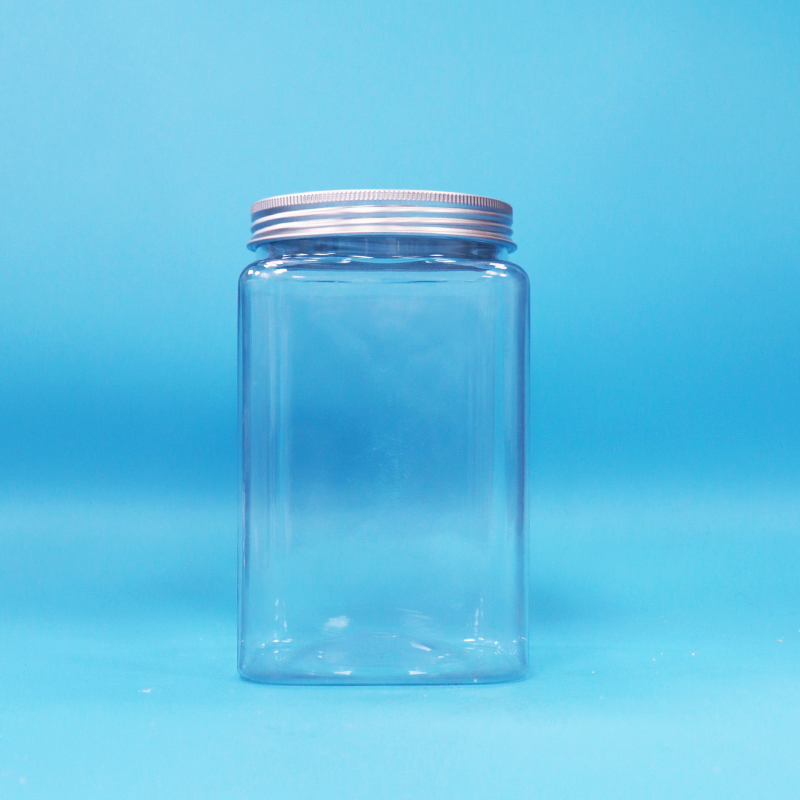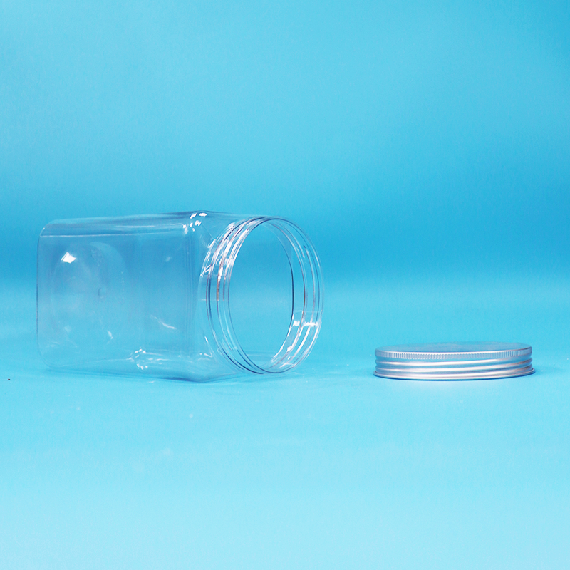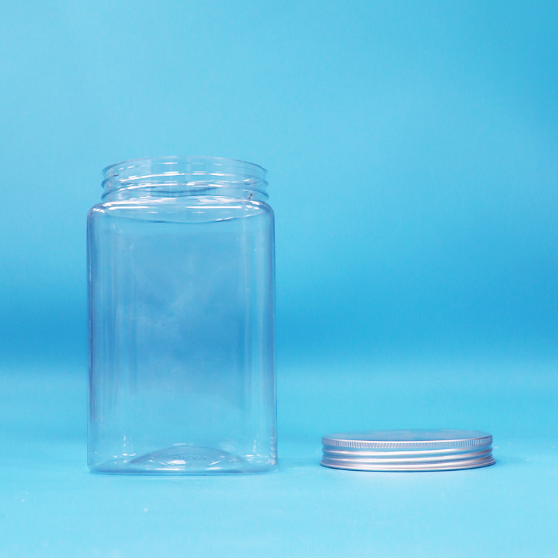 BPA libero quadrato trasparente PET plastico noodles caramelle barattolo e cappuccio di alluminio a vite