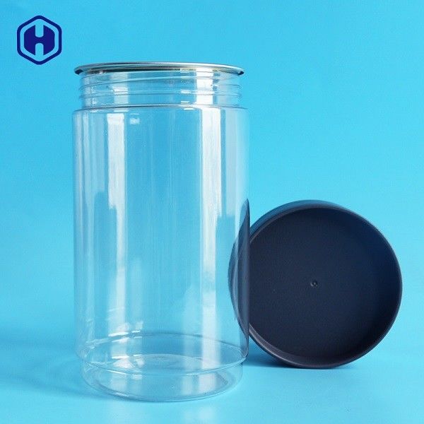 Ciò è chiare latte di plastica rotonde che dopo che avete riempito i prodotti di biscotto dell'anacardio nelle latte, di alluminio EOE (coperchio facile)/POE delle estremità aperte (peli l'estremità) o coperchio della latta hanno bisogno della macchina di sigillatura di sigillare il coperchio, noi fornisce la macchina di sigillamento della partita per i clienti inoltre se bisogno. Offriamo che le latte aperte facili in grado di tenere circa i prodotti della capacità dell'acqua 998ml nelle latte e questo latte di plastica colano la prova e 100% ermetici.
