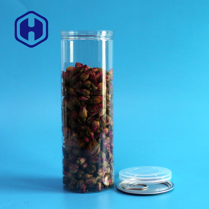 Biscotto trasparente di Eoe che imballa la latta di plastica di Ring Pull High Quality Empty dell'ANIMALE DOMESTICO eliminabile del commestibile con il coperchio aperto facile