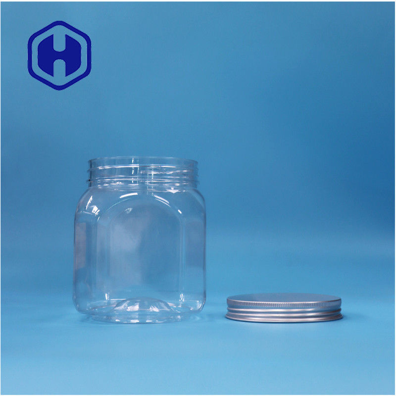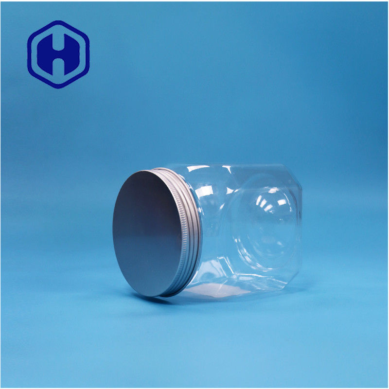 Polygonal Formato trasparente biscotti di plastica Rock Caramelle Noci Zucchero Jar di alluminio Capo superiore