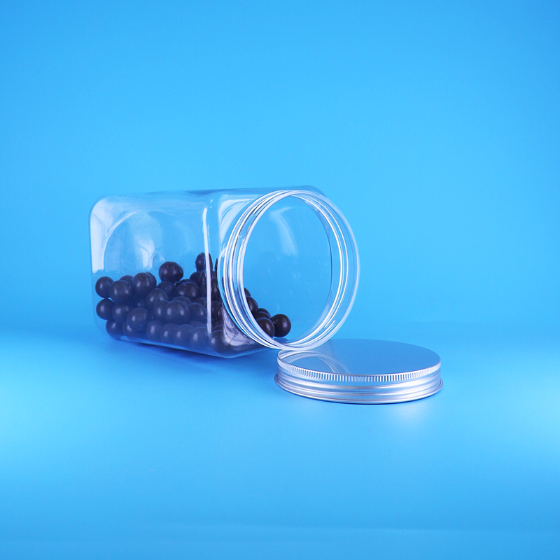 Vasetti alti trasparenti, economici e vuoti, quadrati in PET per caramelle, con tappo piatto in alluminio sfuso