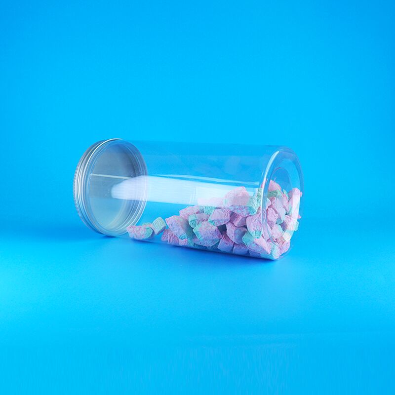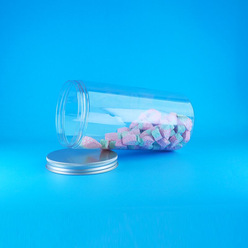 Chiusure in alluminio a bocca larga, trasparenti, alte, rotonde, di plastica, biscotti di cibo secco, barattoli di caramelle.
